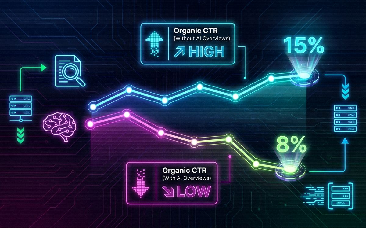 Marta, propietaria de una tienda online de cosmética natural en Sevilla, lo descubrió de la peor manera posible. En enero de 2026, su tráfico orgánico cayó un 28% sin que ella cambiara absolutamente nada en su web. "Pensé que era un error de Google Analytics", nos contó. No lo era. Google había empezado a mostrar AI Overviews para las búsquedas informativas que le traían el 40% de su tráfico. Los usuarios obtenían la respuesta directamente en Google y dejaban de hacer clic.