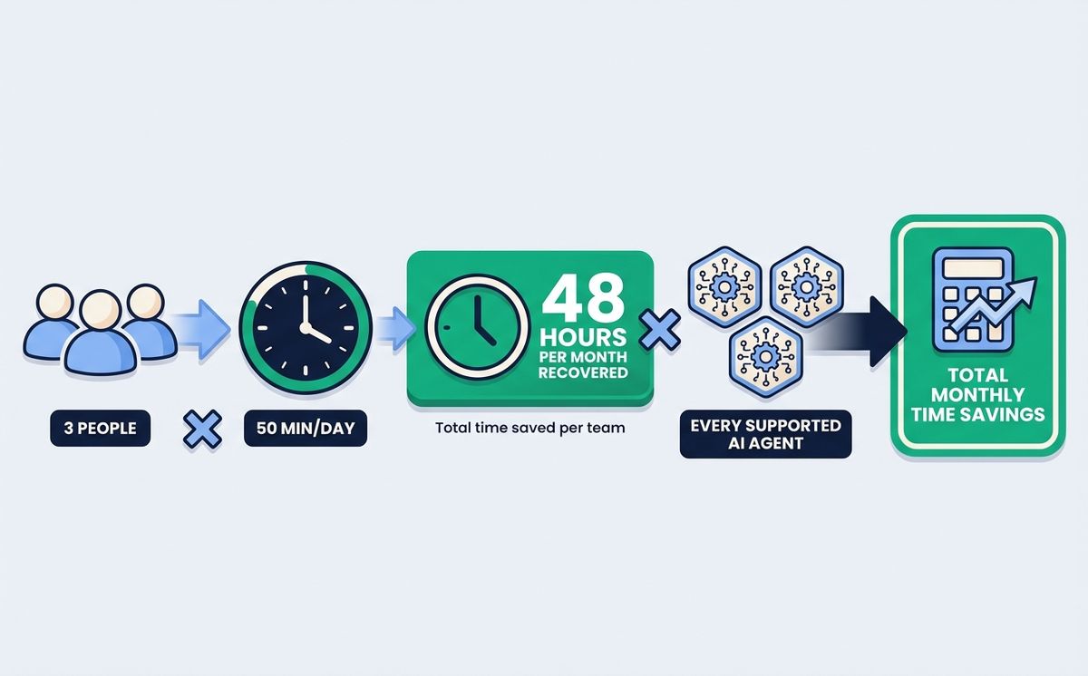 The effect is cumulative. Each new skill adds savings on top of previous ones. A team with five well-designed skills recovers more time than one with twenty mediocre ones, but the trend is always positive.